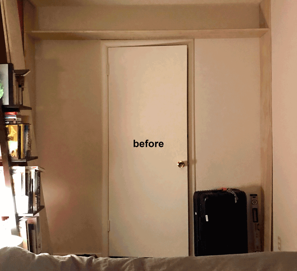 Shelving Since my kid took over my reading box, I needed a new cozy space to concentrate on reading. I came up with a new idea of building an alcove-like shelf around the closet door that doesn’t feel cluttered and bulky. I love how it looks and feels. (before and after photos)